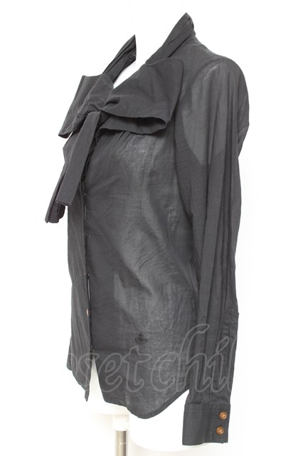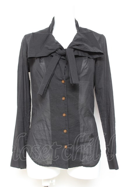 ヴィヴィアンウエストウッド 中古 / 単色オーブ刺繍ボウタイブラウス 1 黒 Y-26-01-28-013-bl-SZ-ZH [2100070000041765-Y-26-01-28-013-bl-SZ-ZH]