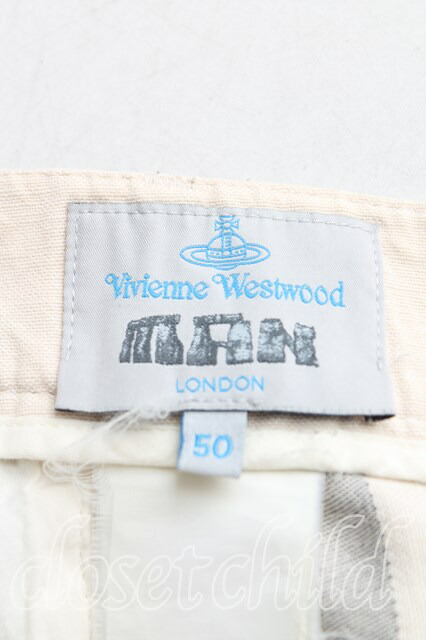 ヴィヴィアンウエストウッド MAN 中古 / アルコホリックカットオフパンツ 50(メンズXL相当) 生成x紺 H-25-10-05-008-pa-OD-ZH [2100050000011927-H-25-10-05-008-pa-OD-ZH]