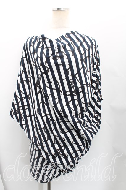 ヴィヴィアンウエストウッド 中古 / スクリブルハートストライプドレープトップス 00(ワンサイズ) 白×紺 H-25-10-12-097-to-IN-ZH [2100050000012123-H-25-10-12-097-to-IN-ZH]