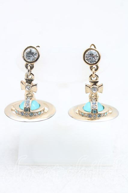 ヴィヴィアンウエストウッド 中古 / ニュープチオーブピアス ゴールドx水色 H-25-10-12-115-er-OD-ZH [2100050000012110-H-25-10-12-115-er-OD-ZH]