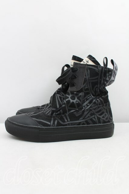 ANGLOMANIA 中古 / カットラスオーブ総柄ハイカットスニーカー 37(23.5cm相当) 黒 H-25-11-02-063-sh-IN-ZH [2100050000012423-H-25-11-02-063-sh-IN-ZH]