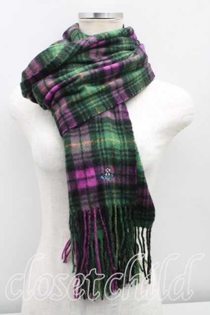 ヴィヴィアンウエストウッド 中古 / カラーオーブ刺繍タータンチェックマフラー 緑 H-25-11-09-037-gd-OD-ZH [2100050000011103-H-25-11-09-037-gd-OD-ZH]