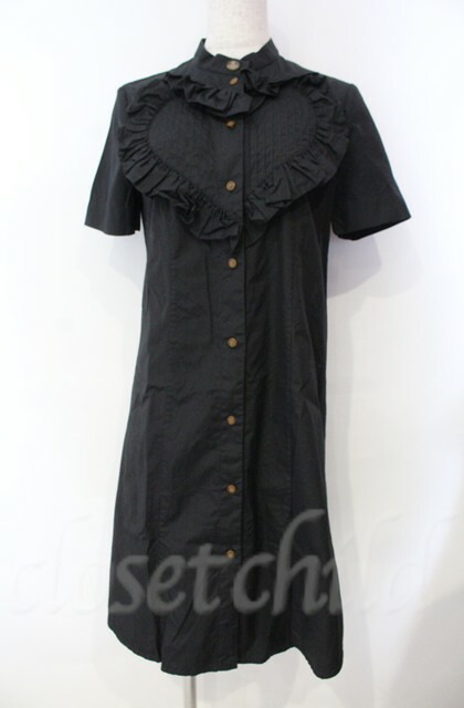 ヴィヴィアンウエストウッド 中古 / ハートフリル半袖シャツワンピース 1 ブラック O-25-11-09-023-op-YM-OS [2100080000054834-O-25-11-09-023-op-YM-OS]