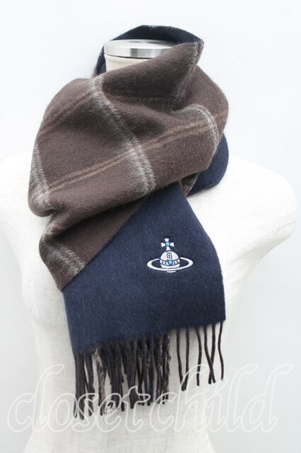 ヴィヴィアンウエストウッド 中古 / チェックバイカラーマフラー 茶 H-25-11-16-024-gd-OD-ZH [2100050000010763-H-25-11-16-024-gd-OD-ZH]