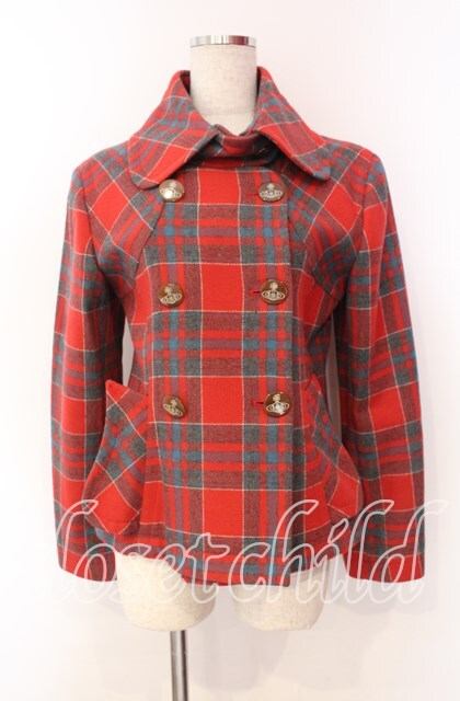 ヴィヴィアンウエストウッド 中古 / タータンチェックダブルショートコート 2 レッド O-25-11-16-011-co-YM-OS [2100080000064471-O-25-11-16-011-co-YM-OS]