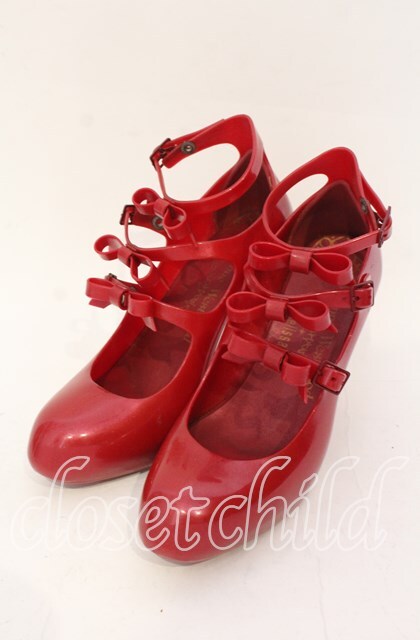 ヴィヴィアンウエストウッド×Melissa 中古 / ボウ3ストラップエレベーテッドシューズ JPN24.5 EUR39 ラメレッド O-25-11-23-047-sh-IG-OS [2100080000038202-O-25-11-23-047-sh-IG-OS]