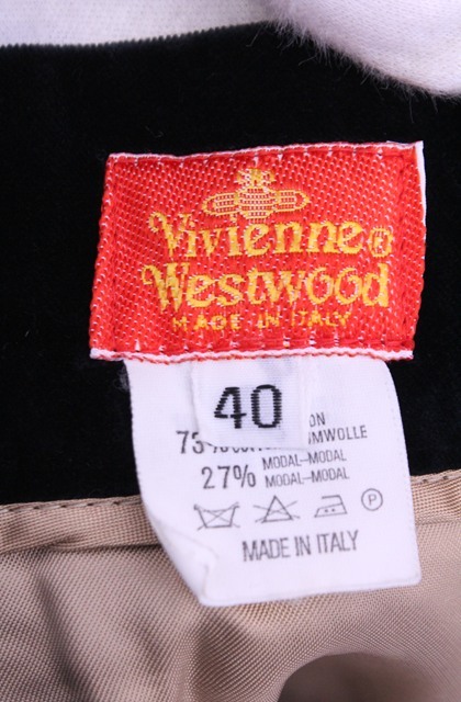 ![]() 【コンディション】 3/5 正面中央スレキズ、ウエスト内部に細かいキズ/1994年以前のヴィンテージ。アストアロボット販売品。マスターライセンスでないにしろ、当時のヴィヴィアンウエストウッドの歴史と表現を実際に感じる事のできる貴重な商品。発売の経緯はマルコム・マクラーレン説やヴィヴィアン・イザベル・スウェア説など諸説あり。別珍のヴィンテージスカートはフリークには欠かせないマストアイテム。マストなのにも関わらず、年々手に入りにくくなっているのが人気を物語っている。 【カラー】 ブラック 【サイズ】(サイズ表記について) 40
