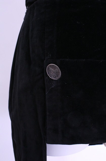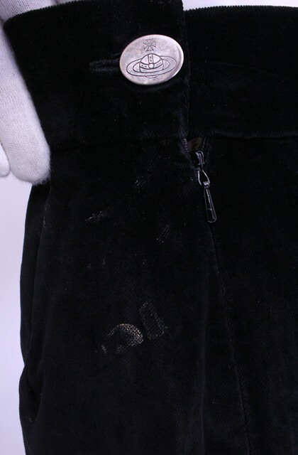 ![]() 【コンディション】 1/5 チュチュ欠品、チュチュ接続部分一か所破損、オーブボタンキズ・ハゲ・変色、ウエスト周り生地キズ多数、ウエストサイドボタン下汚れ多数、ジップ裏の裏地スロット末端縫い目拡張/1988 TIME MACHINEコレクション復刻 女性の魅力、大胆さと美しさに緩急をつけて表現を続ける。そんなヴィヴィアンウエストウッドだからこそ制作できたと言える逸品。ボックスプリーツの下からチュチュがのぞくデザイン。こちらのお品物はチュチュ欠品ですが、チュチュのみでも高額取引されるお品物の本体ですので、チェックは必須です。まぎれもない代表作品。 【カラー】 ブラック 【サイズ】(サイズ表記について) 10