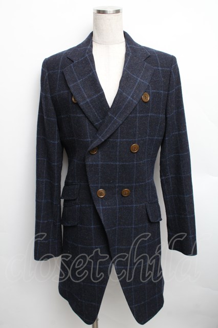 ヴィヴィアンウエストウッド MAN 中古 / ウールチェックコート 44 紺 S-25-12-17-008-co-AS-ZS [2100020000025603-S-25-12-17-008-co-AS-ZS]