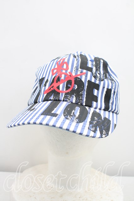 ヴィヴィアンウエストウッド 中古 / ストライプRED KABELSTAMPプリントキャップ 青 H-25-12-28-124-ha-OD-ZH [2100050000013042-H-25-12-28-124-ha-OD-ZH]