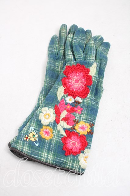 ヴィヴィアンウエストウッド 中古 / フラワー刺繍手袋 緑 H-26-01-11-137-gd-OD-ZH [2100050000012953-H-26-01-11-137-gd-OD-ZH]