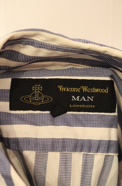ヴィヴィアンウエストウッド MAN 中古 / 高襟ストライプシャツ 4 ブルーxホワイト O-26-01-11-062-bl-YM-OS [2100080000065917-O-26-01-11-062-bl-YM-OS]