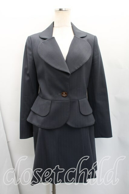 ヴィヴィアンウエストウッド 中古 / ストライプラブジャケット&ライディングスカートセットアップ 2(9号相当) 灰 H-26-02-01-023-su-IN-ZH [2100050000013553-H-26-02-01-023-su-IN-ZH]