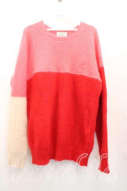 ANGLOMANIA 中古 / カットラスラウンドニット 38(M相当) ピンクx赤 H-26-02-01-028-to-OD-ZH [2100050000013555-H-26-02-01-028-to-OD-ZH]