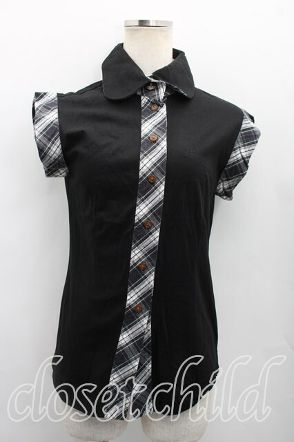 ヴィヴィアンウエストウッド 中古 / タータンチェック切替ノースリーブカットソー 2(9号相当) 黒 H-26-02-08-044-to-OD-ZH [2100050000013682-H-26-02-08-044-to-OD-ZH]