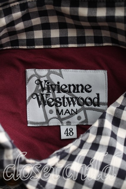 ヴィヴィアンウエストウッド MAN 中古 / ギンガムチェックアシメシャツ 48(メンズL相当) 黒xボルドー H-26-02-15-035-bl-OD-ZH [2100050000013878-H-26-02-15-035-bl-OD-ZH]