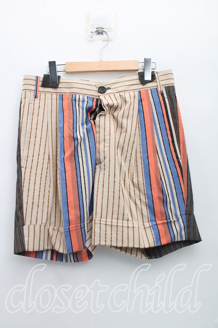 ヴィヴィアンウエストウッド MAN 中古 / ストライプショートパンツ 48(メンズL相当) ベージュ H-26-02-22-013-pa-OD-ZH [2100050000014006-H-26-02-22-013-pa-OD-ZH]
