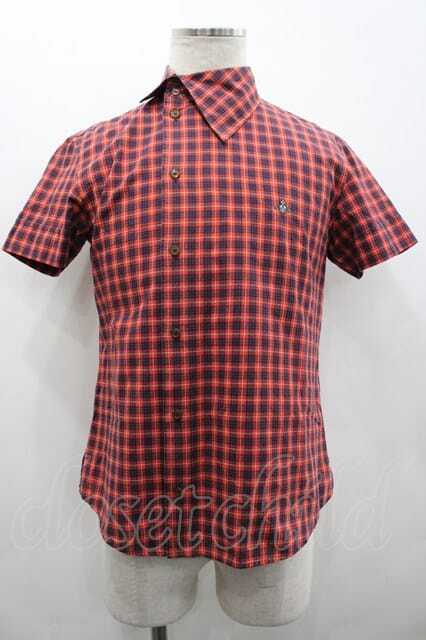 ヴィヴィアンウエストウッド MAN 中古 / オーブ刺繍チェック半袖シャツ 46 赤X紺チェック I-26-02-25-002-bl-HD-ZI [2100060000051019-I-26-02-25-002-bl-HD-ZI]
