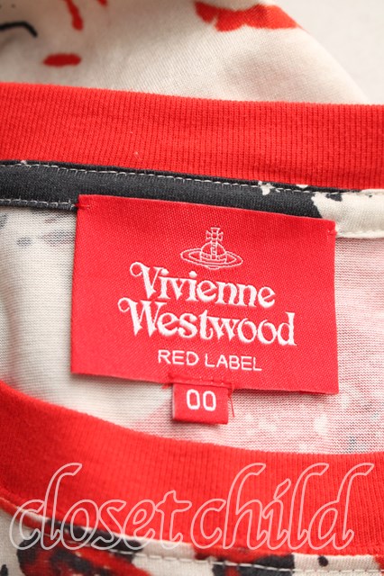 ヴィヴィアンウエストウッド 中古 / ラビッシュ柄カットソーワンピ 00(ワンサイズ) 赤xベージュ H-26-03-01-007-op-OD-ZH [2100050000014025-H-26-03-01-007-op-OD-ZH]
