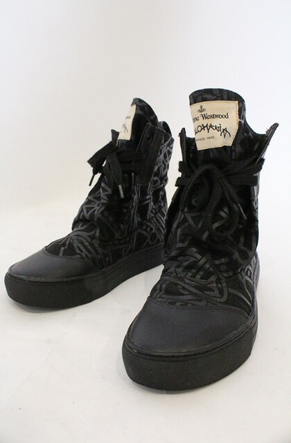 ANGLOMANIA 中古 / カットラスオーブ総柄ハイカットスニーカー 39(約24.5cm) ブラック O-26-03-01-008-sh-YM-OS [2100080000074696-O-26-03-01-008-sh-YM-OS]