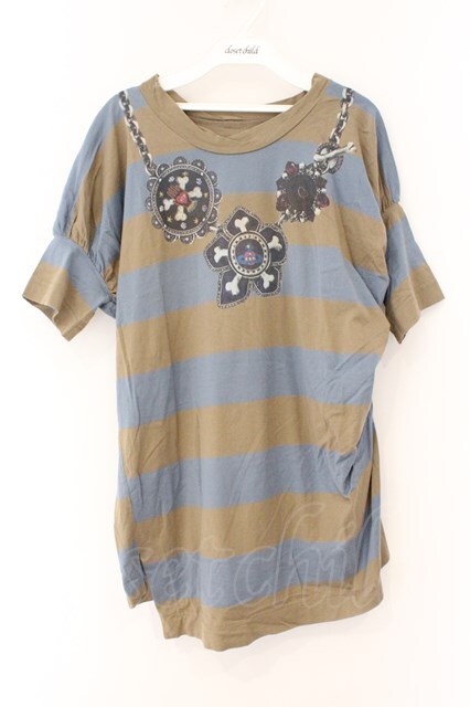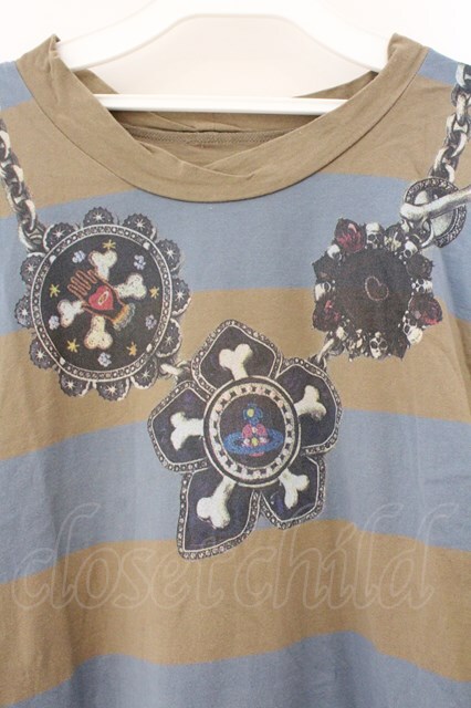 ヴィヴィアンウエストウッド 中古 / ネックレスプリントボーダーカットソー 3 ブルーxカーキ O-26-03-08-041-to-YM-OS [2100080000075945-O-26-03-08-041-to-YM-OS]
