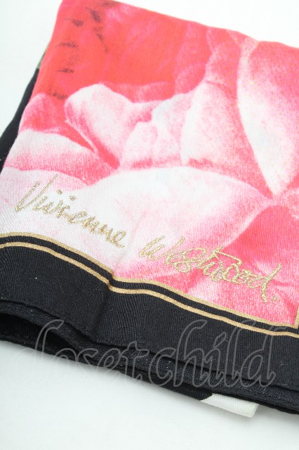 ヴィヴィアンウエストウッド 中古 / ローズプリントハンカチ 黒xピンク S-26-03-15-015-gd-HR-ZS [2100020000038748-S-26-03-15-015-gd-HR-ZS]