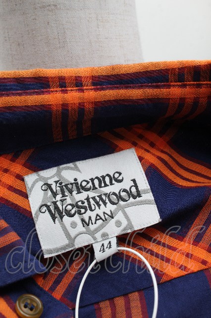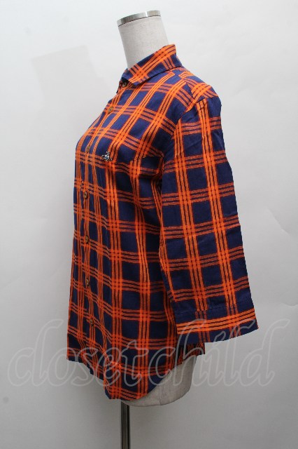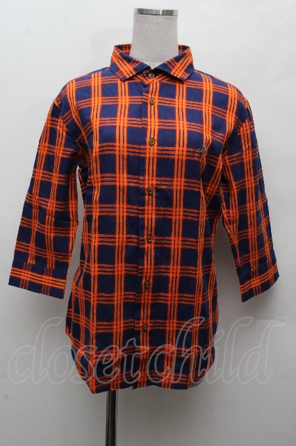 ヴィヴィアンウエストウッド MAN 中古 / チェック7分シャツ 44 紺xオレンジ S-26-03-15-037-bl-AS-ZS [2100020000037887-S-26-03-15-037-bl-AS-ZS]