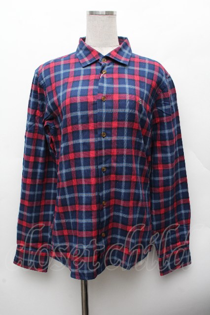 ヴィヴィアンウエストウッド MAN 中古 / チェックコットンシャツ 44 紺 S-26-03-15-032-bl-AS-ZS [2100020000037889-S-26-03-15-032-bl-AS-ZS]