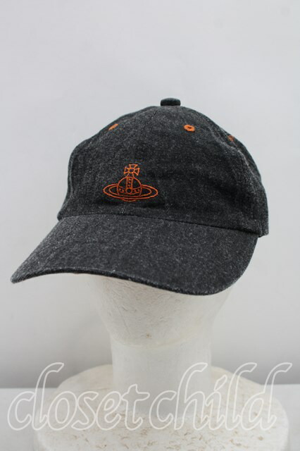 ヴィヴィアンウエストウッド 中古 / ラインオーブ刺繍キャップ ブラック×オレンジ H-26-04-12-037-ha-SZ-ZH [2100050000014577-H-26-04-12-037-ha-SZ-ZH]