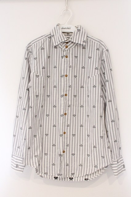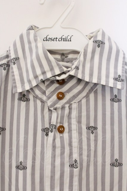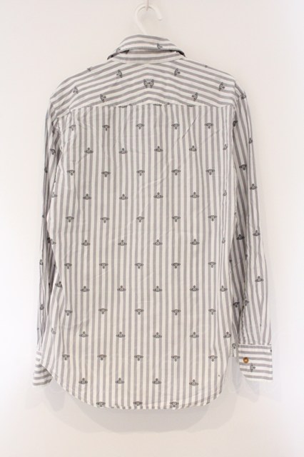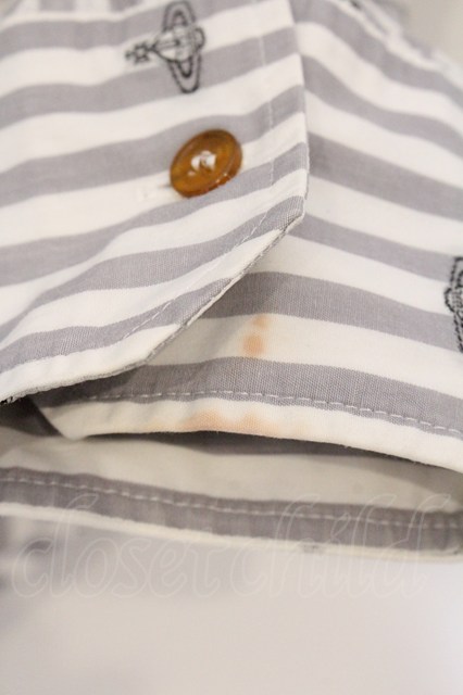 ヴィヴィアンウエストウッド MAN 中古 / ドットオーブストライプ高襟シャツ 46 ホワイトxグレー O-26-04-12-006-bl-YM-OS [2100080000077741-O-26-04-12-006-bl-YM-OS]