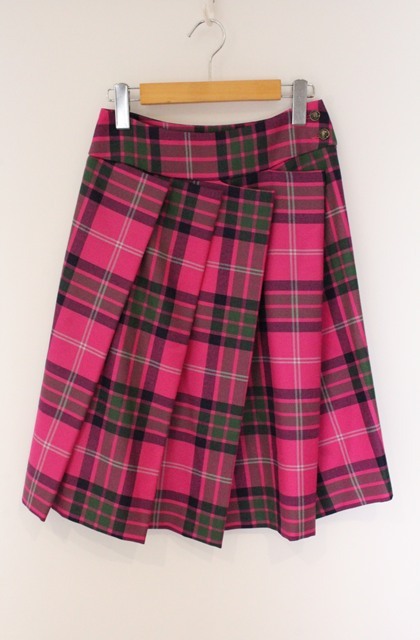 ヴィヴィアンウエストウッド 中古 / 変形プリーツウールタータンスカート 38 ピンク O-26-04-19-083-sk-YM-OS [2100080000079725-O-26-04-19-083-sk-YM-OS]